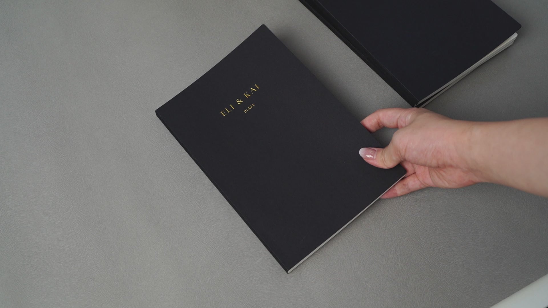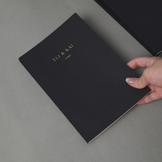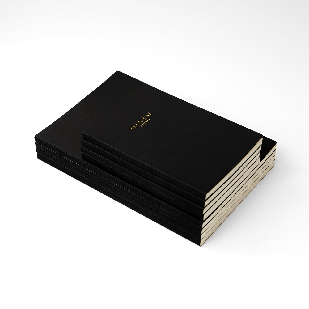 Luxury Finish – Black matte rigid cover with subtle gold foiled Eli & Kai logo, giving your diary a refined, elegant presence.